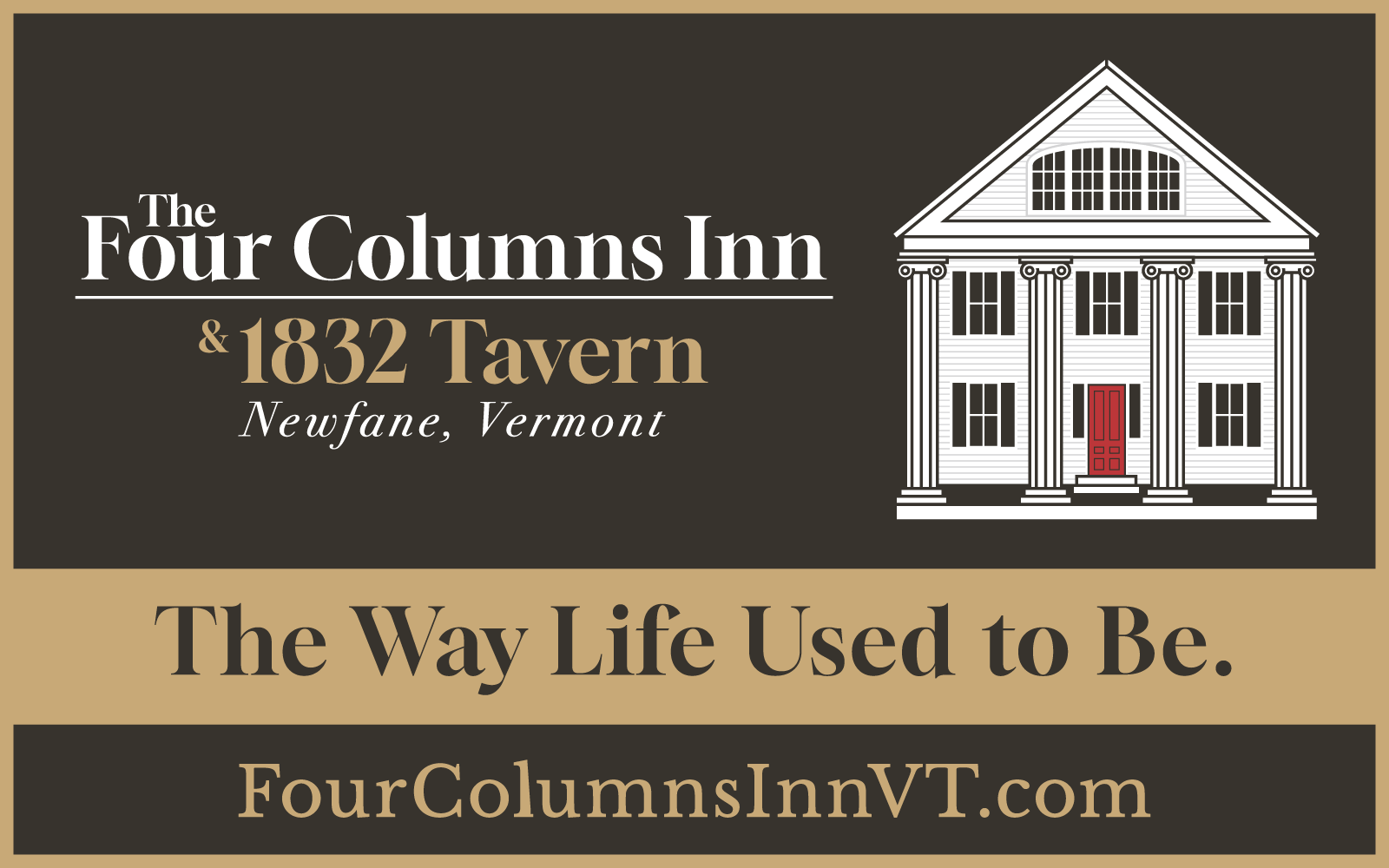 Tucked away on the tranquil and idyllic village green of Newfane, Vermont, sits the historic Four Columns Inn. This picturesque New England country inn will fulfill all of your notions about charming Vermont escapes and romantic getaways. Our Federal-style buildings offer 15 comfortably elegant rooms, most with spa tubs and fireplaces.
